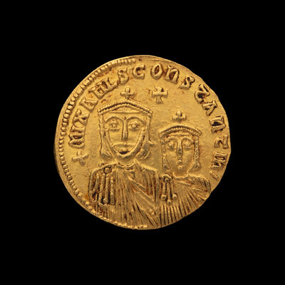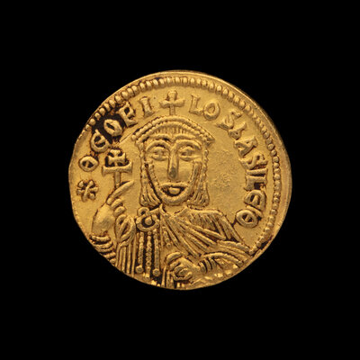 [ANCIENTS] BYZANTINE EMPIRE. Theophilus (c. 829-842 AD). Av Solidus (4.4g, 22mm); the reverse showing the crowned facing busts of Michael and Constantine.