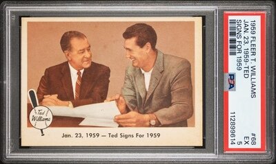 A 1959 Fleer Ted Williams Ted Signs For 1959 Baseball Card No. 68 (PSA 5 EX)