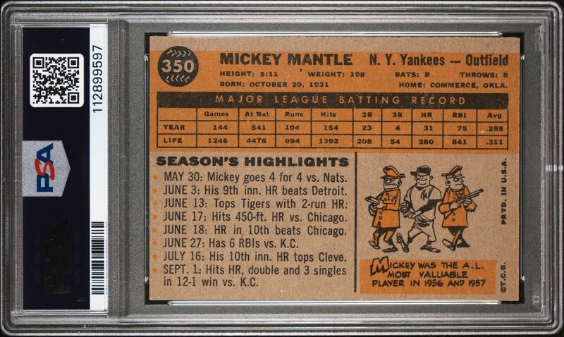 A 1960 Topps Mickey Mantle Baseball Card No. 350 (PSA 5 EX)