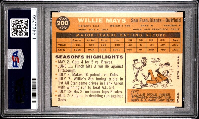 A 1960 Topps Willie Mays Baseball Card No. 200 (PSA 6 EX-MT)