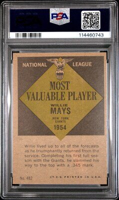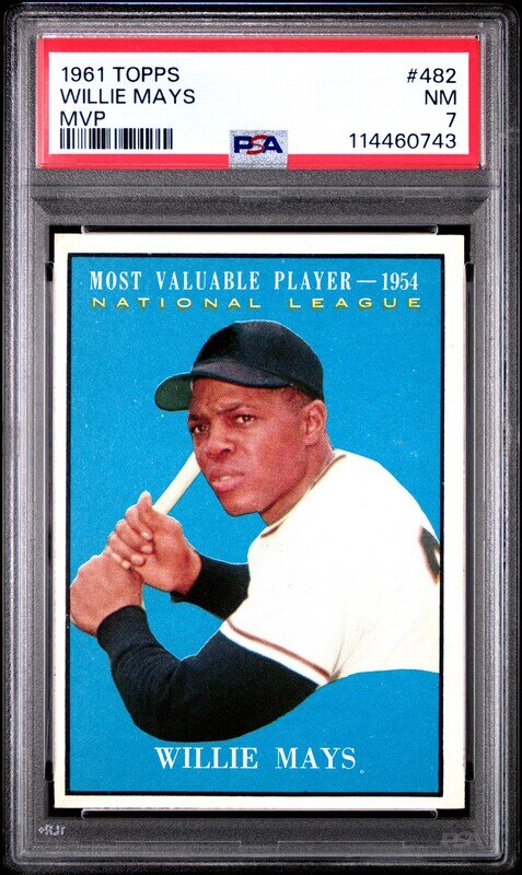 A 1961 Topps Willie Mays MVP Baseball Card No. 482 (PSA 7 NM)