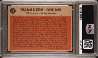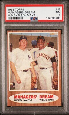 A 1962 Topps Mickey Mantle Willie Mays Managers Dream Baseball Card No. 18 (PSA 7 NM)