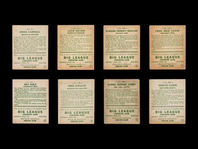 comprising Owen Carroll (No. 72), Jack Quinn (No. 78), Woody English (No. 135), Fred Red Lucas (No. 137), Ray Kolp (No. 150), Fred Schulte (No. 190), Bernie James (No. 208), Adolfo Luque (No. 209).
