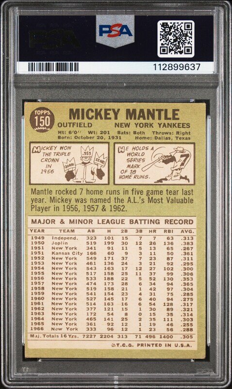 A 1967 Topps Mickey Mantle Baseball Card No. 150 (PSA 3 VG)