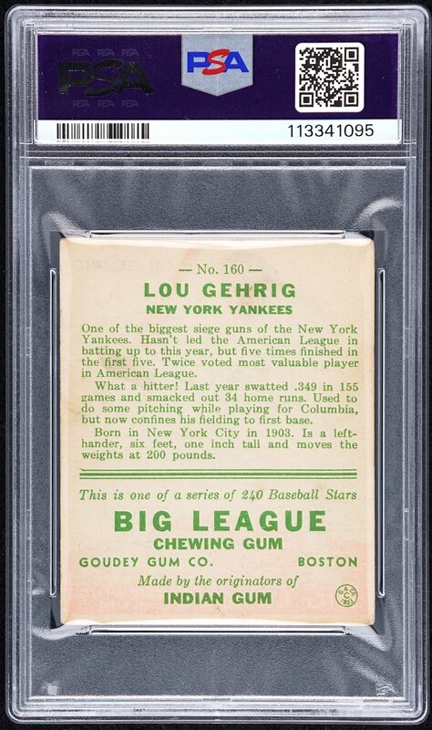 A 1933 Goudey Lou Gehrig Baseball Card No. 92 (PSA 3 VG)