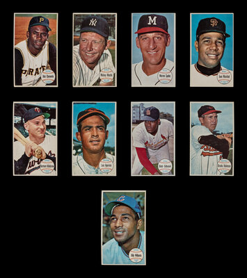 1964 Topps Giants: Roberto Clemente, Mickey Mantle, Juan Marichal, Luis Aparicio, Brooks Robinson, Billy Williams, Harmon Killebrew, Warren Spahn, Bob Gibson.