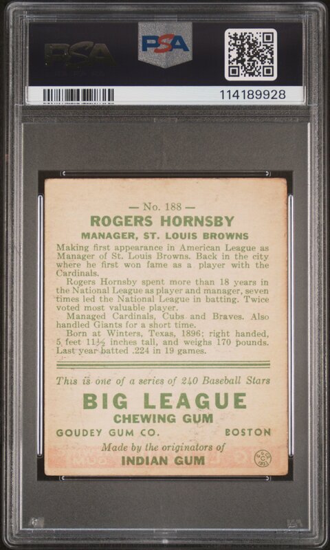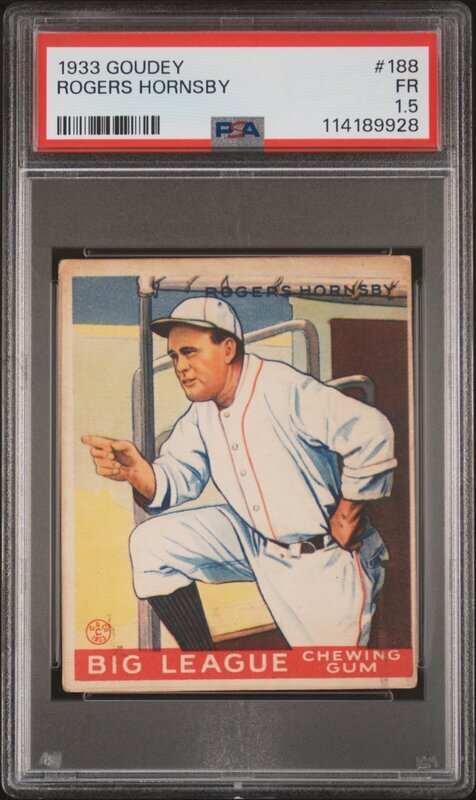 A 1933 Goudey Rogers Hornsby Baseball Card No. 188 (PSA 1.5)
