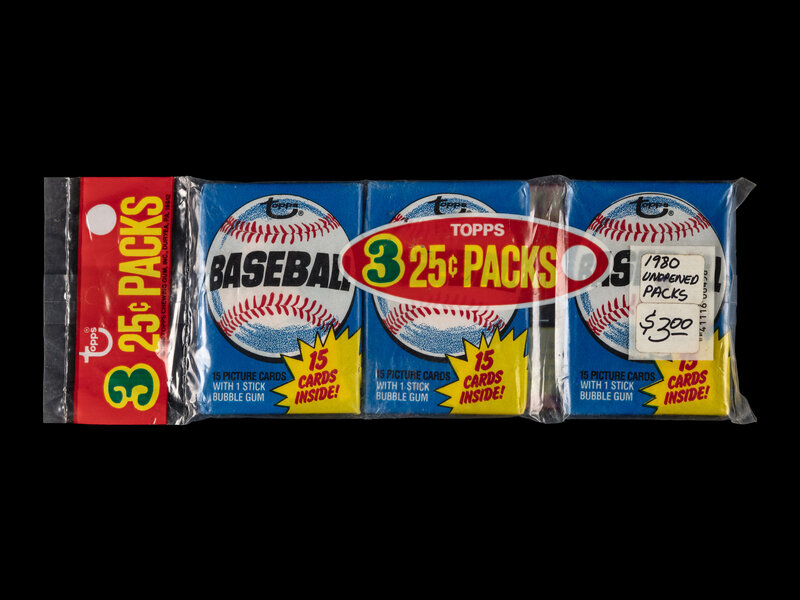An Unopened 1980 Topps Baseball Card Three Pack - Possible Rickey Henderson Rookie Card