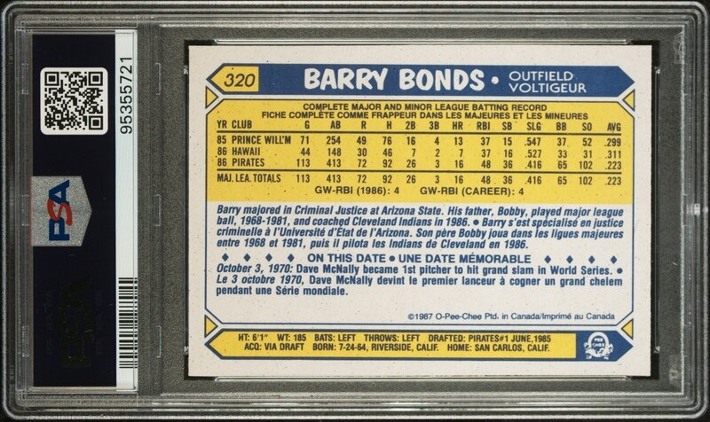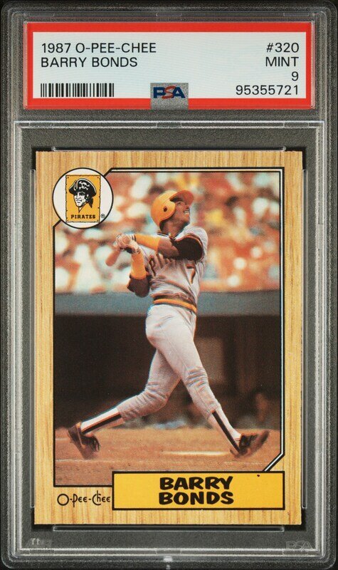 A 1987 Barry Bonds O-Pee-Chee Rookie Baseball Card No. 320 (PSA 9 MINT)
