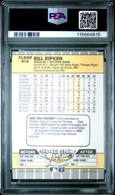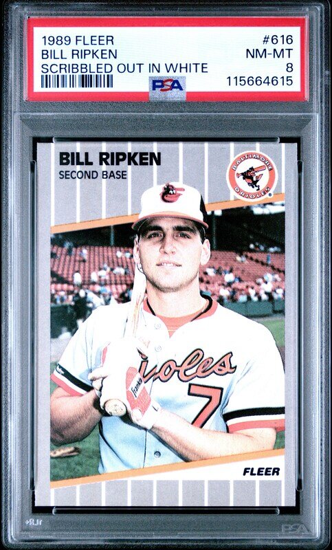 A 1989 Fleer Billy Ripken FF Scribbled Out In White Baseball Card (PSA 8 NM-MT)