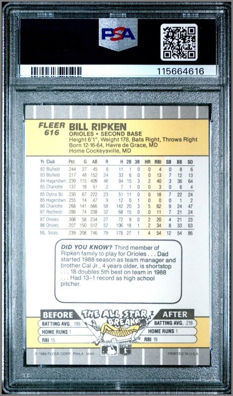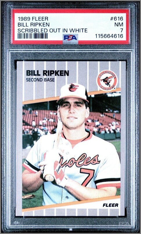 A 1989 Fleer Billy Ripken FF Scribbled Out In White Baseball Card (PSA 7 NM)