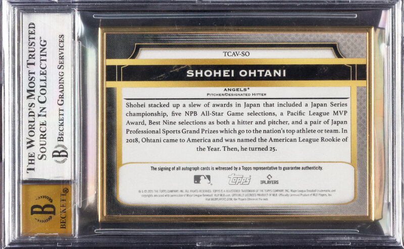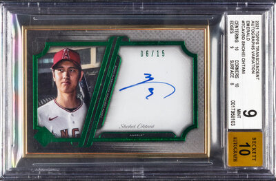 A 2021 Topps Transcendent Emerald Shohei Ohtani Signed Autograph Baseball Card No. TCAVSO Number 6/15 (BGS 9 MINT, 10 AUTO)