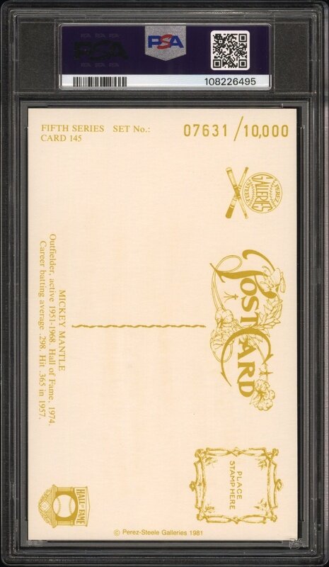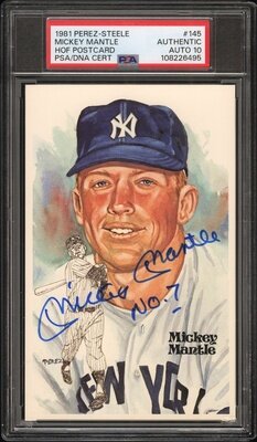 A Mickey Mantle Signed Autograph Perez Steele Hall of Fame Postcard - NO. 7 INSCRIPTION (PSA 10 AUTO)