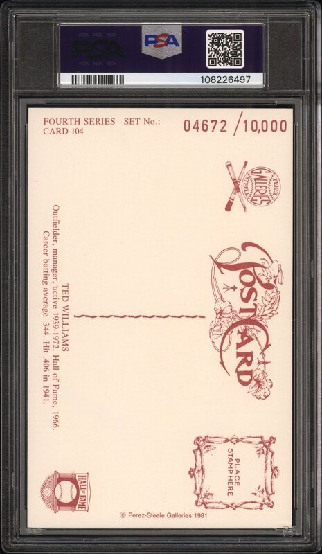 A Ted Williams Signed Autograph Perez Steele Hall of Fame Postcard (PSA 9 AUTO)
