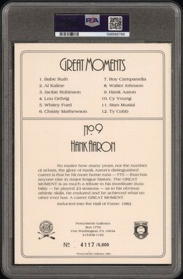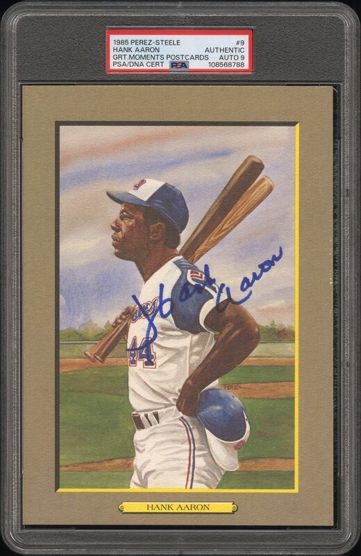 A Hank Aaron Signed Autograph Perez Steele Great Moments Postcard (PSA 9 AUTO)