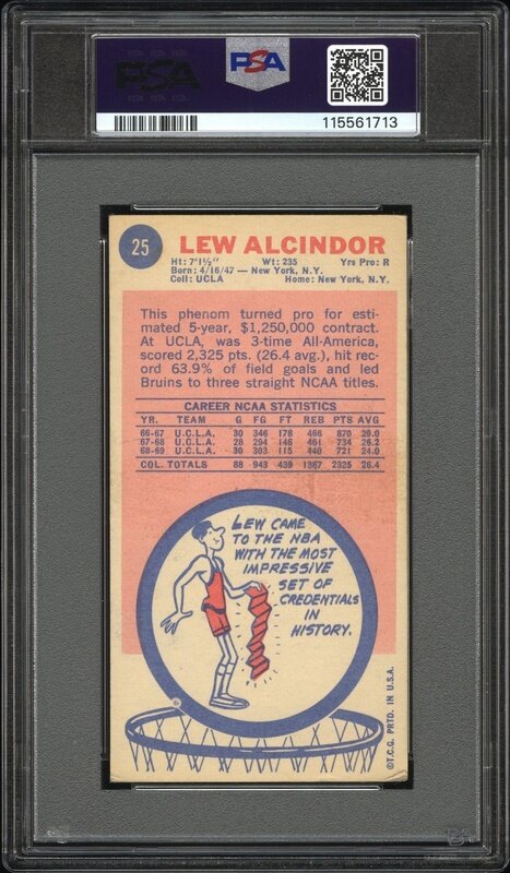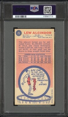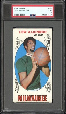 A 1969 Topps Kareem Abdul Jabbar (Lew Alcindor) Rookie Basketball Card No. 25 (PSA 3 VG)