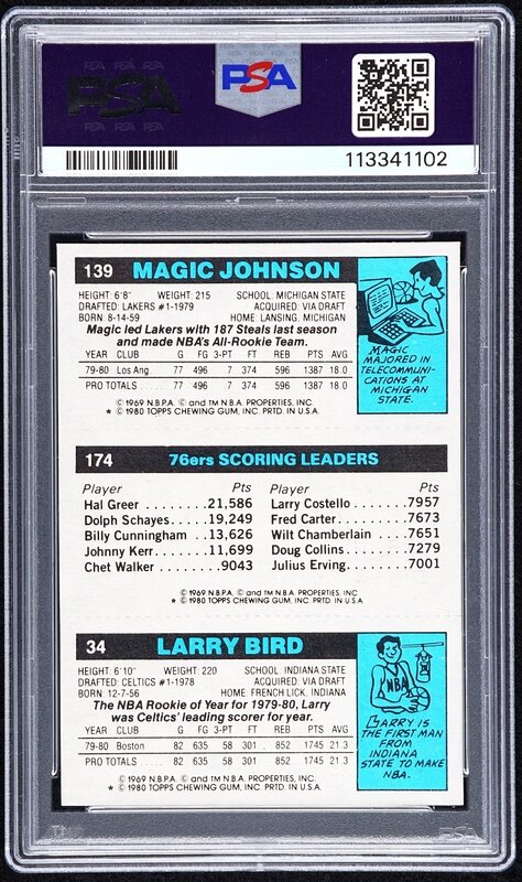 1980 Topps Scoring Leader Larry Bird Magic Johnson Rookie Basketball Card (PSA 6.5 EX-MT+)