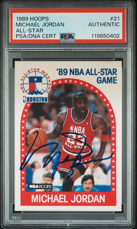 A 1989 Hoops Michael Jordan Signed Autograph Basketball Card No. 21 (PSA)