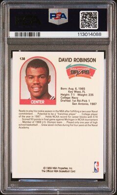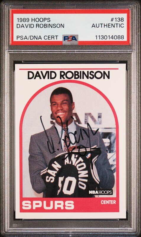 A 1989 NBA Hoops David Robinson Signed Autograph Rookie Basketball Card No. 138 (PSA Authentic)