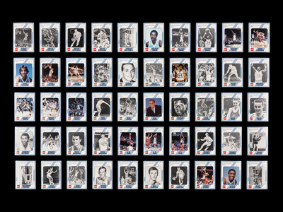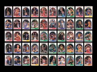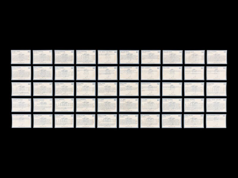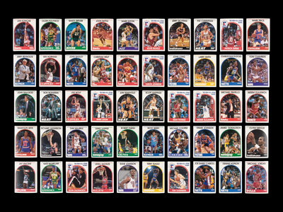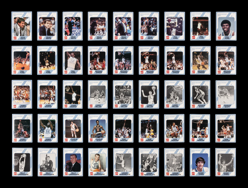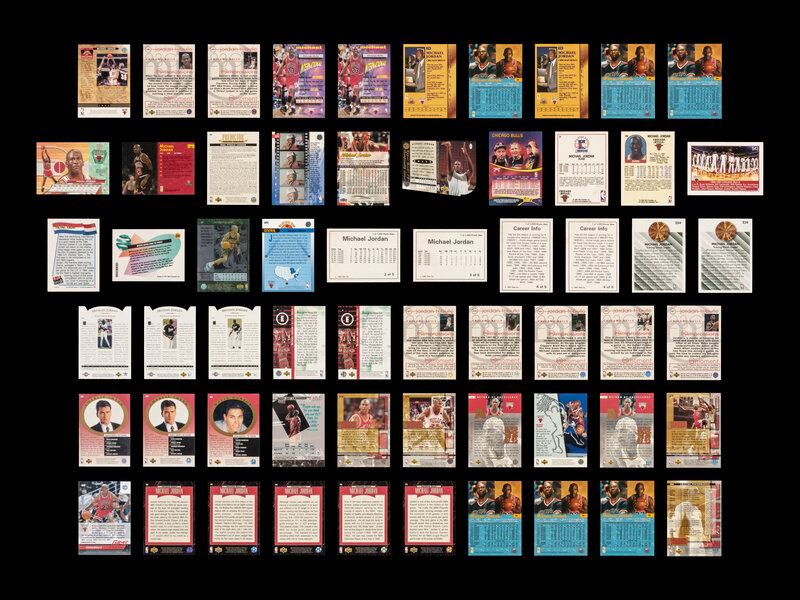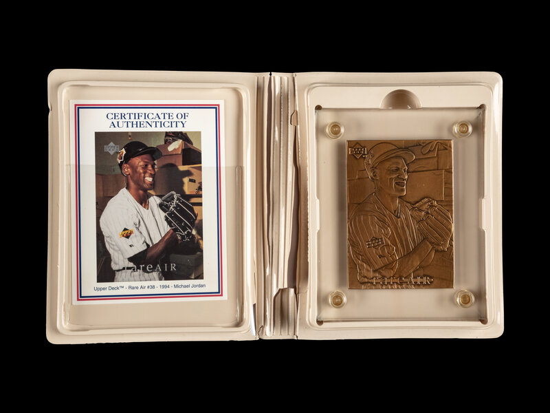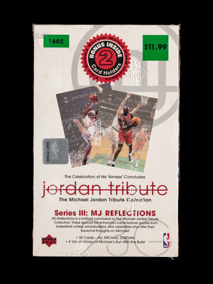 comprising over 50 individual issues, one 1997-98 Upper Deck Jordan Tribute Series Three unopened box, one 1989 North Carolina Collegiate Collection box, one 1994 Upper Deck Highland Mint Jordan bronze Rare Air baseball card numbered 2217/5000, one complete set of 1989 NBA Hoops Series One basketball cards (300), one complete set of 1989 North Carolina Collegiate Collection basketball cards (200).