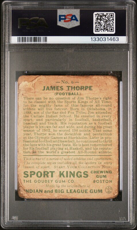 A 1933 Goudey Sport Kings Jim Thorpe Card No. 6