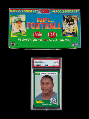 A Factory Set of 1989 Score Football Cards with Barry Sanders Rookie Card (PSA 8 NM-MT)