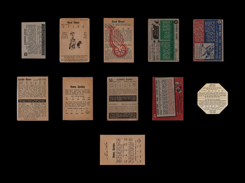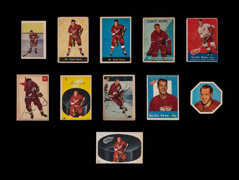 comprising 1952 Parkhurst No. 88; 1953-54 Parkhurst No. 50; 1954 Parkhurst No. 41; 1957 Topps No. 42; 1958 Topps No. 8; 1959-60 Topps No. 63; 1960 Parkhurst No. 20; 1961 Parkhurst No. 20; 1962-63 Parkhurst No. 30, No. 31; 1963-64 York Peanut Butter.