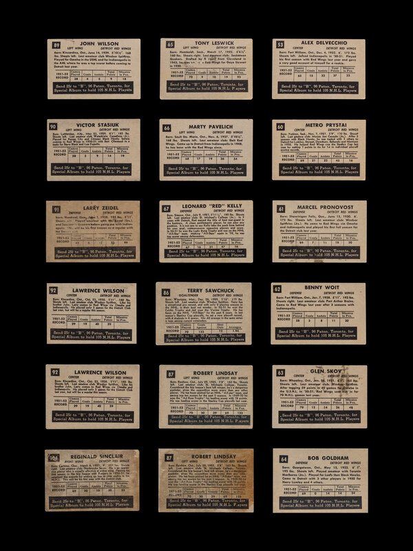 A Collection of Detroit Red Wings 1952 Parkhurst Hockey Cards (18)
