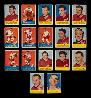 A Collection of Detroit Red Wings 1957-58 Topps Hockey Cards (17)