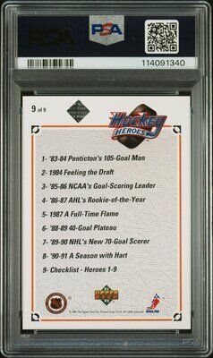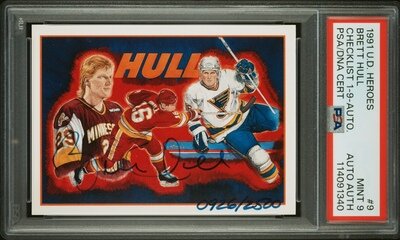 A 1991 Upper Deck Brett Hull Signed Autograph Hockey Heroes Card No. 9 (926/2,500) PSA 9 MINT