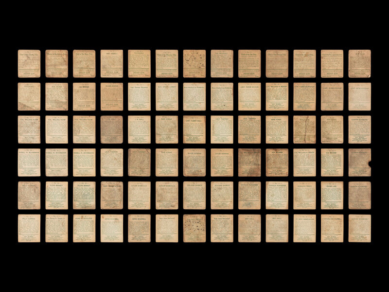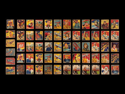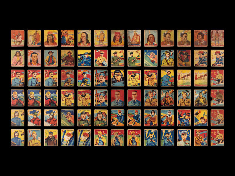 comprising 1933 Indian Gum: Ute Tribe, Pot-O-Wat-O-Mies Tribe, Pawnee Tribe (x2), Sioux Tribe, Omaha Tribe, Kioway Tribe, Mandan Tribe, Geronimo, Red Jacket, The Prophet, Dutchy, Tecumseh, Daniel Boone, Jim Bridger, Mrs. Merrill, Traveling (x2), Old Bear; 1934 National Chicle Sky Birds: David Putnam (x2), Rene Fonck, Lieut. Thieffrey (x4), Capt. Albert Ball, J.N. Hall (x2), Capt. Albert Heurteaux, Rene Dorme (x2), Major Barracca (x2), Roland Garros (x2), Charles Nungesser (x2), Norman Prince, Frank Luke, Kiffin Rockwell (x2), Sergt. James McConnell (x3), Bert Hall (x2), Lt. Max Immelmann, Lt. Douglass Campbell, Quentin Roosevelt (x3), Capt. De Beauchamp (x2), Capt. Georges Guynemer, Maj. Raoul Lufbery, Baron Manfred von Richthofen (x2), Lieut. Frank Baylies (x2), Joe Wehner (x2), Col. William Bishop (x3), Col. William Thaw (x3), Russell Boardman (x3), Floyd Bennett (x2), Willy Coppens (x2), Maj. George A. Vaughn Jr., James H. Doolittle (x2), Capt. Charles E. Kingsford-Smith, Frank M. Hawks, Gen. Italo Blabo (x4), Colonel Charles A. Lindberg, Clarence D. Chamberlain (x2), Capt. James B. McCudden (x2), Edward A. Stinson, Bernt Balchen, Spad (x4), Albatross Taube 1914, Juan de la Cierva (x3), Adm. William A. Moffett, E. Hamilton Lee, Capt. Oswald Boelcke (x3), Lt. Edward Parsons, Amelia Earhart (x2), Orville Wright (x2), Ruth Nichols (x2), Lt. Werner Voss, The Salamander (x2), Edmond Genet, Georges Madon (x3), Maj. Reed Landis (x3), D.H. 10 Bomber (x2), The Bristol Fighter, Capt. John Alcock, John A. Magready (x4), Capt. Roald Amundsen, Nieuport Triplane, Vickers Vampire B.R.2, The Spirit of St. Louis, Lt. Rudolf Von Eschwege, Capt. Brocard, Parnell Panther, Lt. Alan McLeod, Wild Bill Wellman.