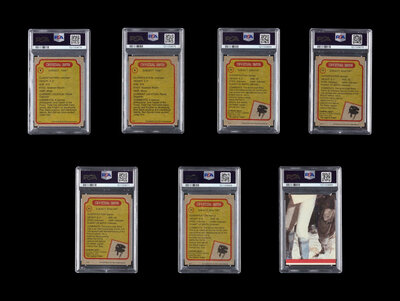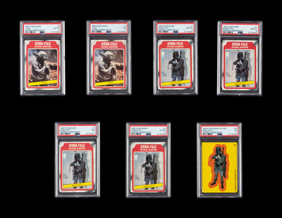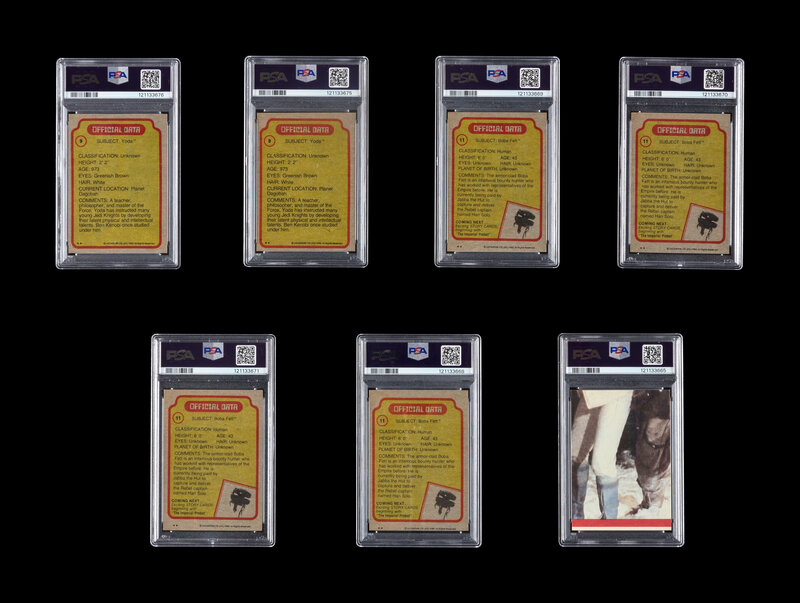 comprising Yoda No. 9 (PSA 7, PSA 6); Boba Fett No. 11 (PSA 8 x2, PSA 7, PSA 6); Boba Fett Sticker No. 30 (PSA 5).