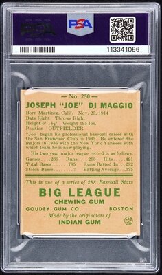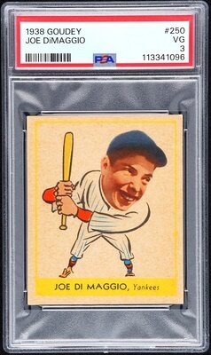 A 1938 Goudey Heads Up Joe DiMaggio Rookie Baseball Card No. 250 (PSA 3 VG)