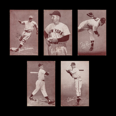 A Collection of 1947-66 Exhibits Baseball Cards Including Jackie Robinson