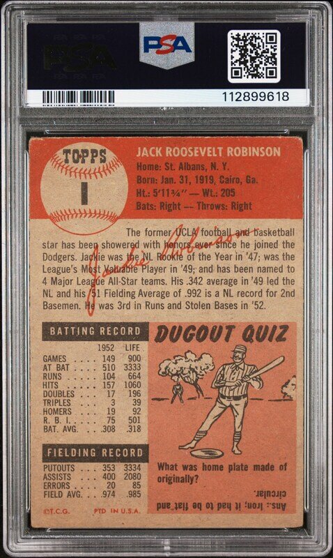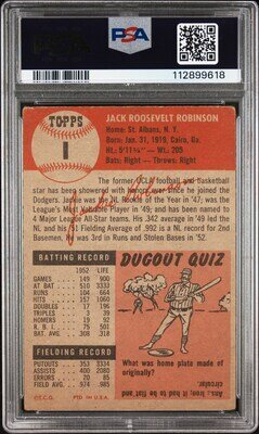 A 1953 Topps Jackie Robinson Baseball Card No. 1 (PSA 2 GOOD)