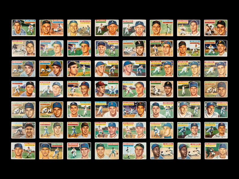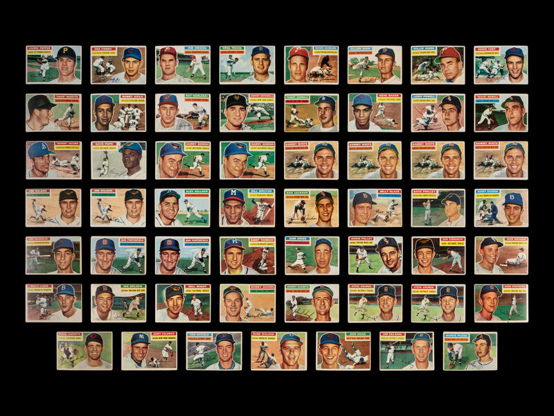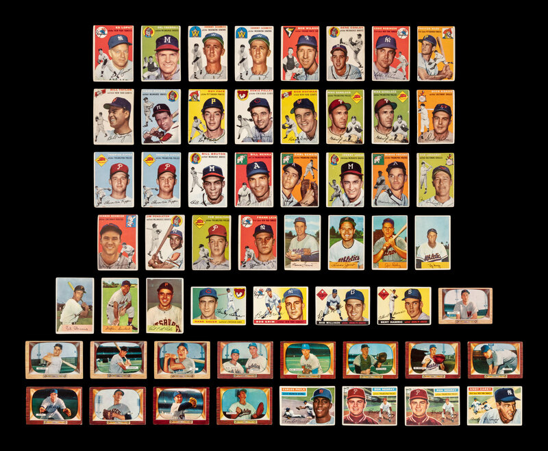 comprising 1954 Topps: 5, 12, 33 (x2), 58, 59, 62, 72, 74, 79, 87, 89, 99, 104 (x2), 106, 108 (x2), 109, 112, 118, 122, 124, 157, 162, 165, 174, 175; 1954 Bowman: 3, 35, 55, 83, 91, 103, 107; 1955 Topps: 45, 80, 111, 199; 1955 Bowman: 13, 36, 46, 52, 119, 139, 140, 141, 175, 181, 182, 199, 214, 1956 Topps: 4, 7 (x2), 12, 17, 19, 21, 22 (x2), 23, 27, 28, 32, 34 (x2), 36, 38, 39, 43, 46, 48 (x2), 50, 51 (x2), 52 (x3), 54, 58, 59, 60, 64, 65, 66, 68 (x3), 69, 71, 73, 74, 76 (x2), 78, 80 (x2), 82 (x2), 83, 93 (x2), 96, 98, 102, 103, 104, 105 (x2), 106, 108, 112, 114, 117, 120, 122, 127, 128, 129, 132, 133, 138, 139, 142, 144, 149, 151, 154, 167 (x2), 168 (x4), 171 (x2), 176, 185, 186, 217, 222, 223, 237, 248 (x2), 257, 259, 262, 266, 267, 270, 284, 286, 287, 298, 310 (x2), 313, 314, 316, 318, 333, 335, 338, 339.