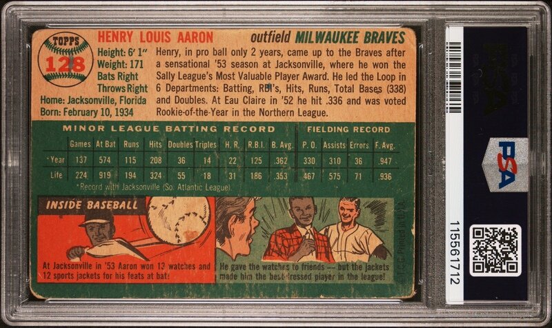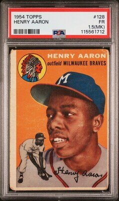 A 1954 Topps Hank Aaron Rookie Baseball Card No. 128 (PSA 1.5 MK)