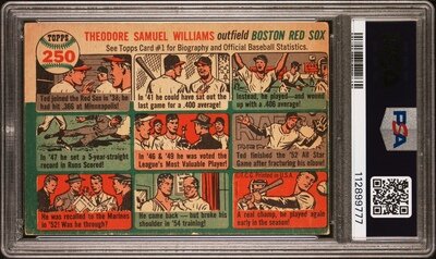 A 1954 Topps Ted Williams Baseball Card No. 250 (PSA 3 VG)
