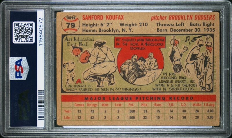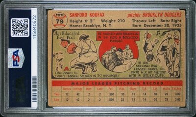 A 1956 Topps Sandy Koufax Baseball Card No. 79 - Gray Back (PSA 2 GOOD)