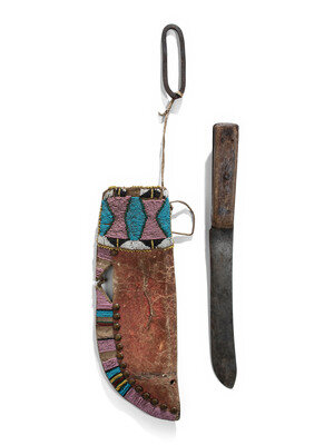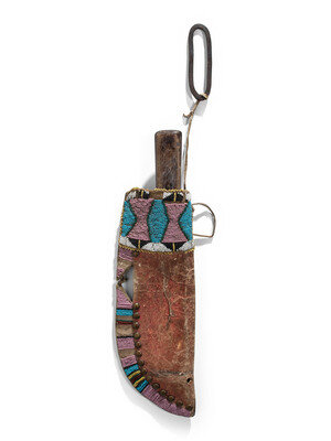 Apsáalooke Beaded Knife Sheath, with Knife and Striker