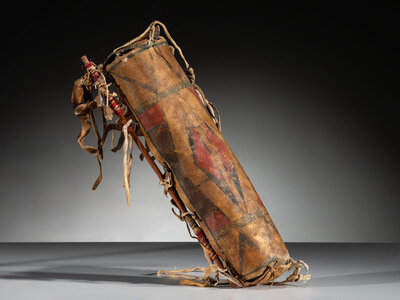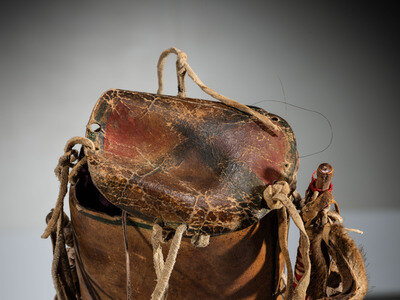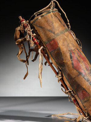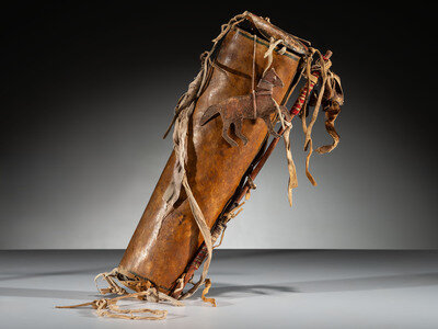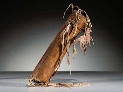 Apsáalooke Painted Parfleche Cylinder, with Horse Charm
