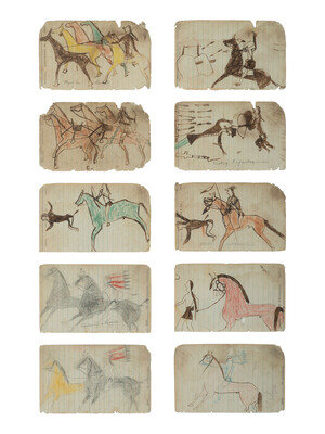 The remaining images, by a second hand, focus on scenes of stealing ponies along with several battle vignettes, including a duel with settlers