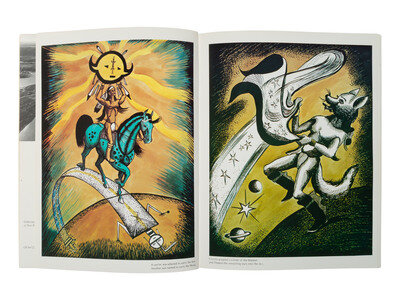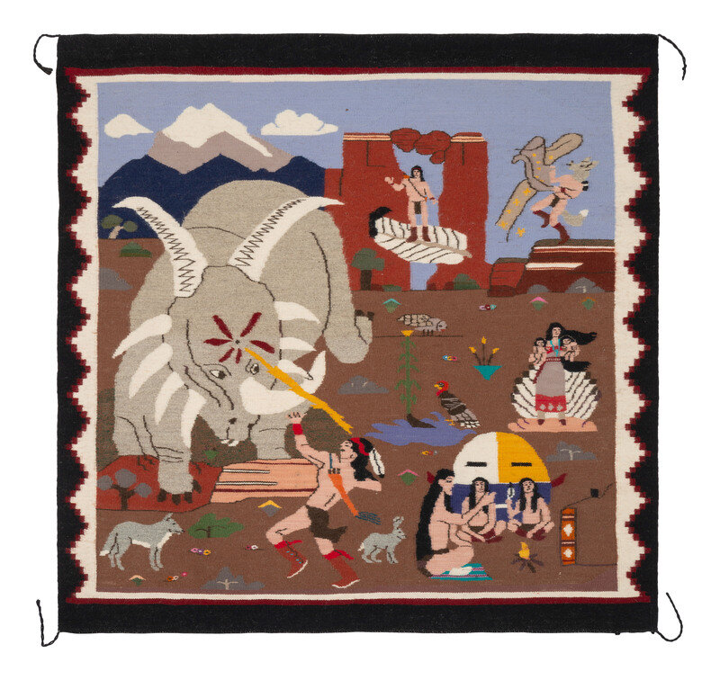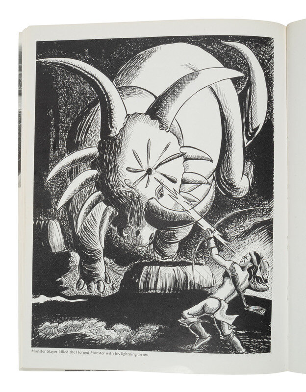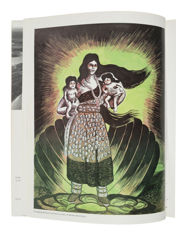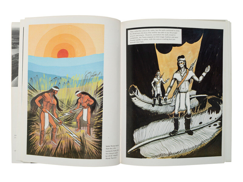 inspired by Andy Tsihnahjinnie's illustrations in Navajo History - Volume 1 (ed. Yazzie, Ethelou, 1971); depictions of Creation and Hero stories include: Coyote and the Stars, Changing Woman and the Twins, The Sun as Father, The Canyon Trial, and Monster Slayer's Victory