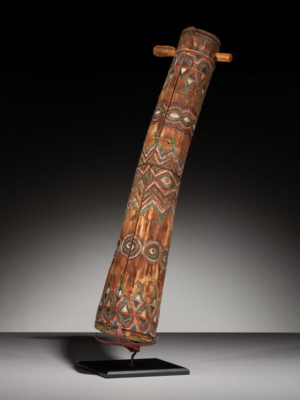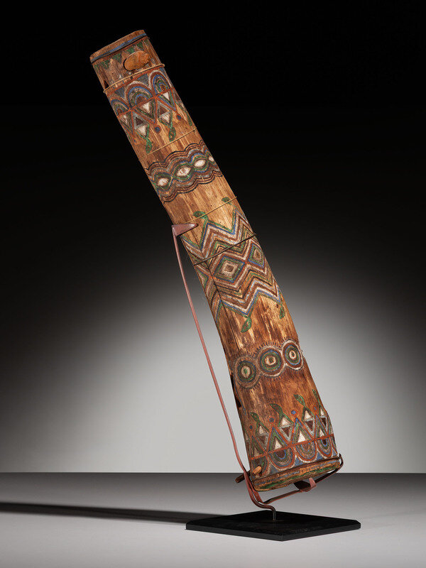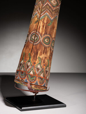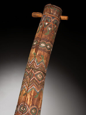 dried agave stalk; vibrantly painted with geometric elements; green paint on base