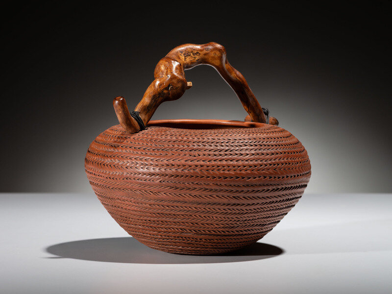 Corrugated Pottery Jar, with Wood Handle, 2021