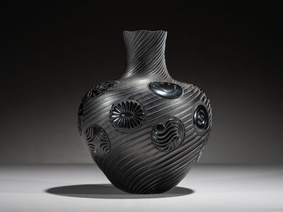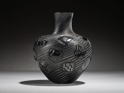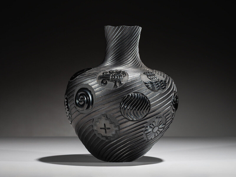 Micaceous Blackware Swirling Pottery Jar, Collaboration