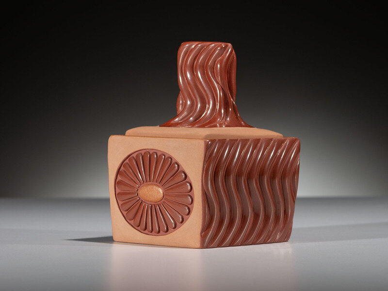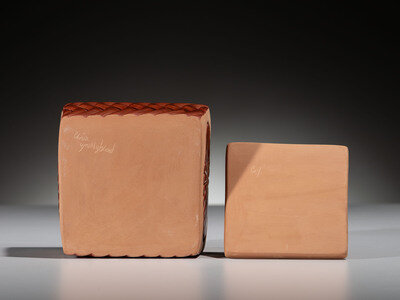carved with ribbed and floral elements; initialed on lid and signed on base