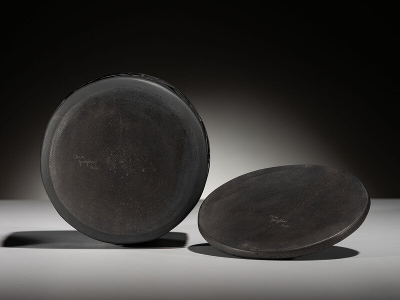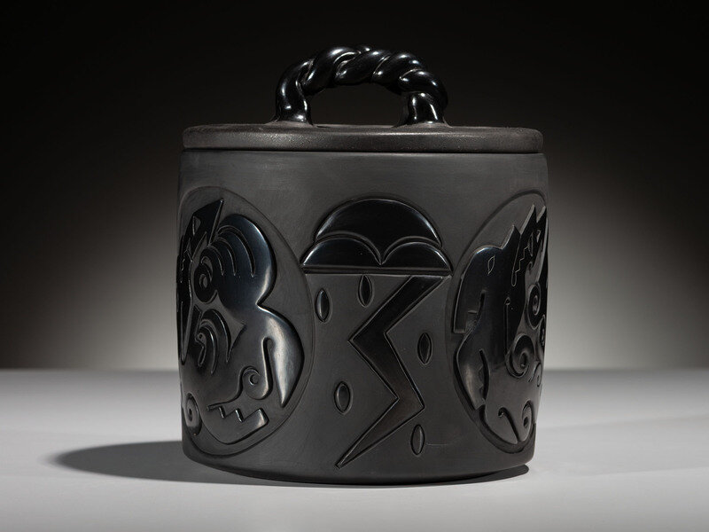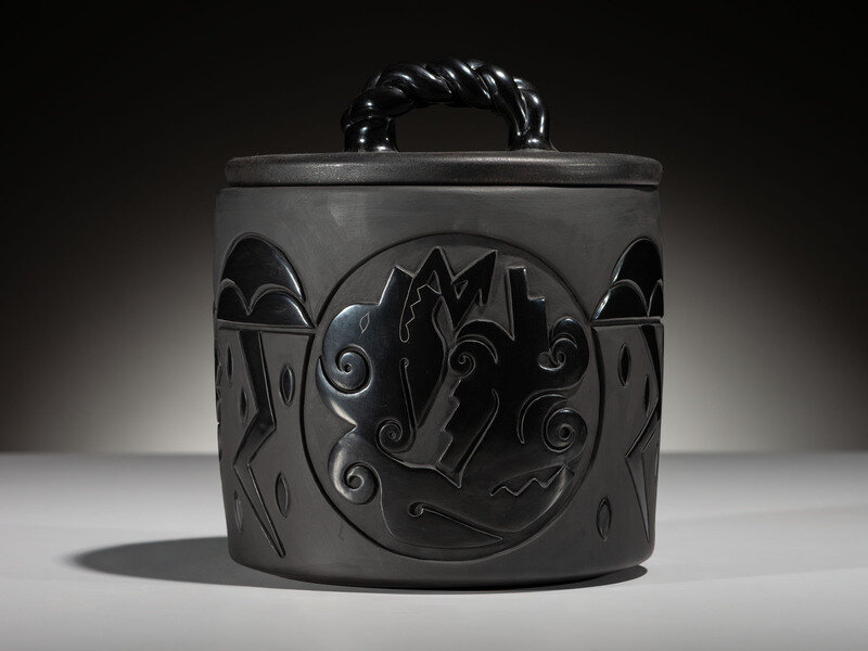 Carved Blackware Pottery Container, with Lid, 2021