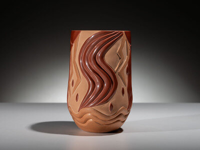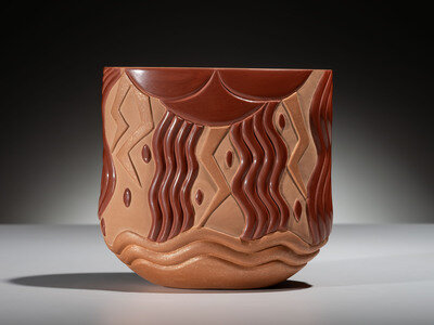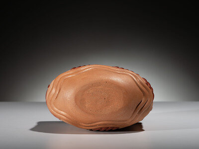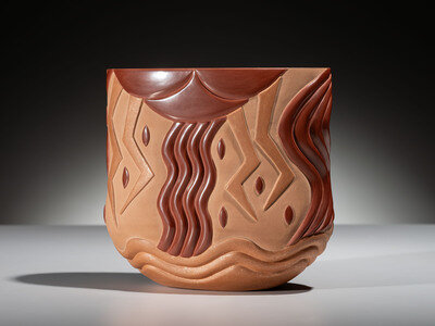 micaceous body and caved with clouds, lightning, and rain; signed on base