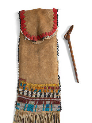 Prairie Beaded Hide Tobacco Bag with Tamper